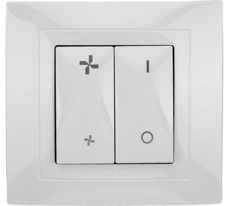 Рядовой выключатель для освещения, адаптированный за 10 центов под вентиляционную специфику нанесением на клавиши 4-х пиктограмм и приложением бокса для накладного монтажа. Со своей работой справляется. Возможен монтаж в подрозетник , бокс-переходник для накладного монтажа останется тогда на память.