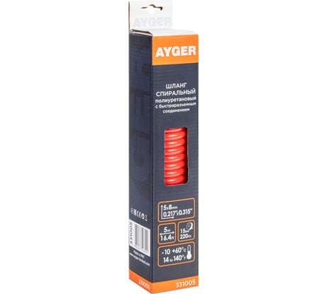 Отзыв Шланг AYGER 5 м, 5х8 мм, спиральный полиуретановый с быстроразъемным соединением, гибкий однослойный 331005