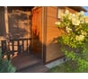 Отлично ложится на деревянные и металлические поверхности. В два слоя полностью перекрывает предыдущий цвет. Цвет схож с коричневым сайдингом темный шоколад. За 3 последних месяца следов износа от осадков не наблюдаю. На фото дверь, столбы, наличники дверей покрашены этой краской.