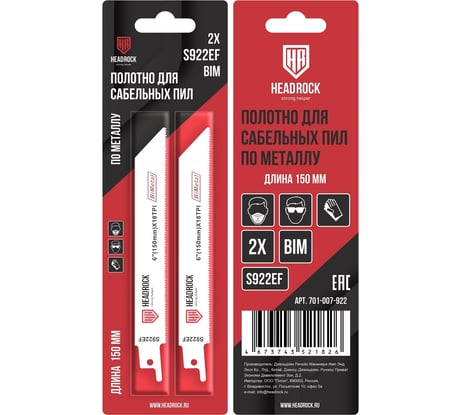 Отзыв Полотно для сабельной пилы S922ef, 2 шт HEADROCK 701-007-922