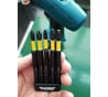 Хороший набор по адекватной цене . Биты намагничены , ходовые размеры 2,3,4 по 2 шт . О крепости рано судить , еще не тестил .