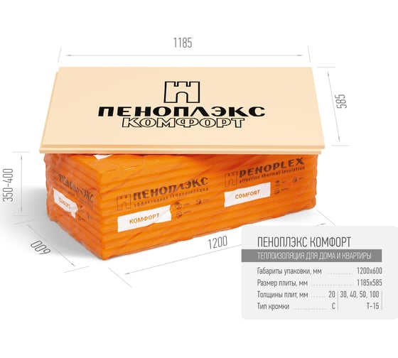 Экструдированный пенополистирол PENOPLEX Комфорт 20x585x1185 м TU0-0002506