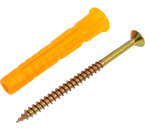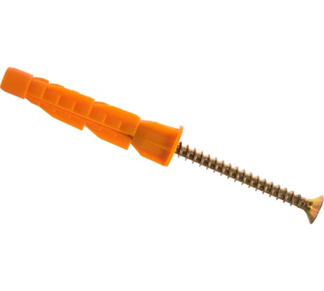 Очень годный дюбель! У Зубра есть такой же, но менее "злой". Специально взял такой, более "злой" - для монтажа в сыпучую рыхлую стену. Засверлил сверлом на 5.5 мм и вогнал эти дюбеля. Получилось как надо, отлично! Шуруп входит тоже как надо. Шуруп не тонкий - 4х50 мм, оцинкованный.