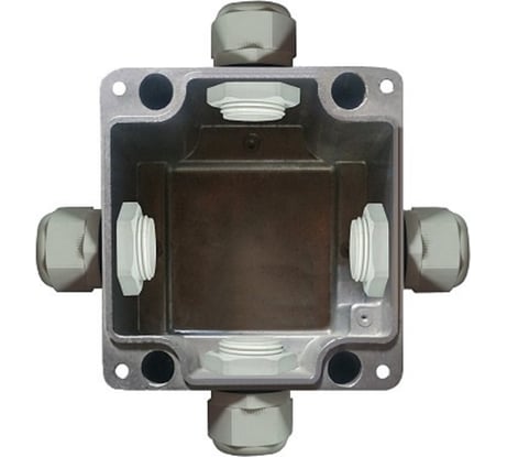 Корпус прочный, металлический. Отверстия для крепления корпуса к несущей поверхности закрываются сверху крышкой коробки.