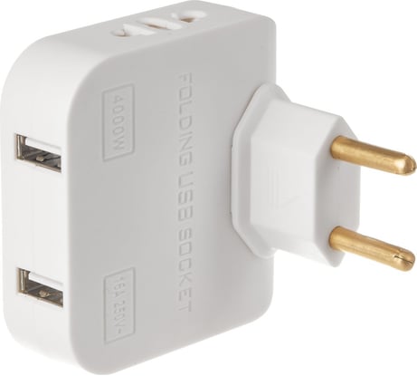 Компактный тройник с возможностью разворота гнёзд относительно штырей. В путешествиях удобен - можно вставить в розетки под штыри ф4 или ф4,8 мм и подключить 3 потребителя вилками со штырями ф4 или ф4,8 мм суммарной мощностью до 1500 Вт. В квартирах тоже могут быть разные и подходящие розетки, ЕВРО или СССР.