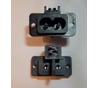 Необычное сетевое гнездо - с дополнительным переключателем, который переключается при втыкании сетевого провода. Такие ставят в радиоприёмники с сетевым и батарейным питанием.