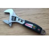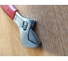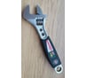 Прекрасный ключ для монтажа никелированых и латунных фитингов без их повреждения. Зев - 52 мм - позволяет крутить американки полтора дюйма (на цирк.насосах). По факту зев расходится до 55 мм - я мерил. Хром-ванадий - не ржавеет, в отличие от дешёвых фосфатированных ключей - за это и не грех переплатить. Болтание челюсти умеренное. Резиновая ручка. Претензий нет: хорошая вещь. Особенно за 1809 рублей...