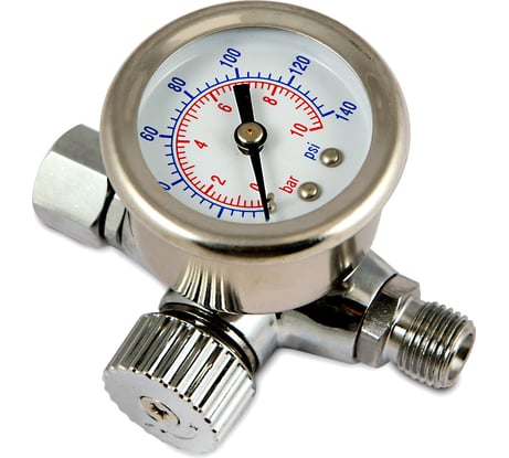 Поработал два дня. После этого краскопульт при тех же настройках давления на манометре (1-1.5 бар) начал плеваться, видимо из-за малого давления, подаваемого на сопло. Замена на похожий по параметрам регулятор другого производителя решила проблему.