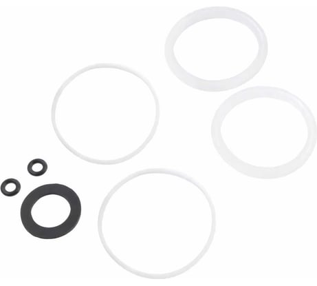 Для дела, по сути, нужны только два силиконовых кольца. Главное-вставить их именно так, как стояли старые. Фторопластовые кольца примерно на миллиметр меньше диаметром, поэтому все равно пришлось старые поставить (картридж "Sedal"). Кольца под шланги с резьбой М10 не подходят, а плоская резиновая прокладка-просто для количества предметов.