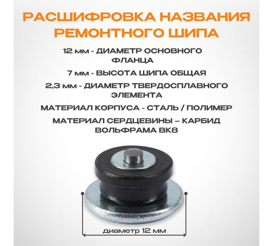 Ремонтный шип Rossvik 12-8-2 серия PRO, 500 шт. 12-8-2 PRO