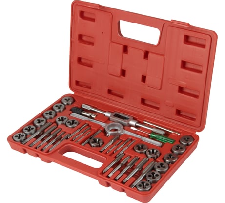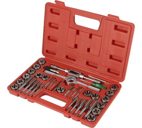 Хороший набор по соотношению цены и качества. Однако кейс не продуман — мелкие метчики свободно перемещаются внутри, что требует доработки. Плашки содержат остатки стружки с завода. За такую стоимость сложно найти аналог с таким количеством различных элементов. Прикладываю фото нарезанной резьбы, а также снимки плашек и их остатков.