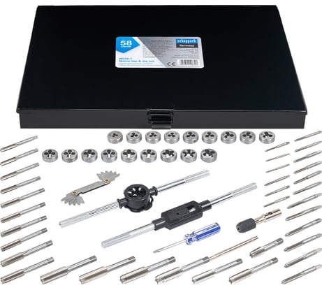 Практичный и полный набор для нарезки резьбы. Всё аккуратно уложено, ничего не болтается. Метчики и плашки из качественной стали — режут чисто, не заминаются. Подходит и для гаража, и для серьёзной работы. Удобные держатели в комплекте. За свои деньги — отличное соотношение цены и качества. Рекомендую.