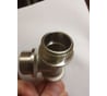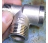 Попался тройник с плохо нарезанной наружной резьбой (не хватило диаметра, видимо допуски при изготовлении огромные), никелевое покрытие слабое, на резьбе желтеет латунь.