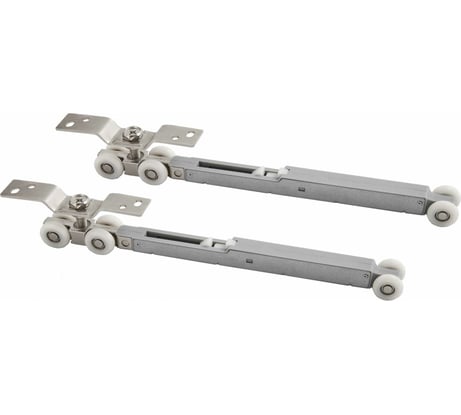 На сайте не корректное описание. В комплект входит: две каретки, два ограничителя, четыре крепежные планки, нижний направляющий ролик, два болта для ограничителя, два болта для крепления каретки, восемь шурупов. Как монтировать ограничители я пока не понял, но про них в описании на сайте ничего нет.
