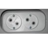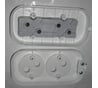 Вполне добротная колодка из двух сетевых розеток для самодельного удлинителя. В розетки изначально плотно входят вилки с советскими штырьками и евровилки с более толстыми штырьками. После евровилок с более толстыми штырьками вилки с более тонкими штырьками могут хлябать. Контактной группы заземления нет. Токоведущие шины сделаны из металла, магнитятся, снаружи омеднены и к ним можно припаять медные провода. Половинки токоведущих шин скреплены винтами M3 с гайками, что добавляет прочности. Жесткость и упругость токоведущих шин средние. Достоинство колодки - можно самостоятельно просверлить на задней стенке отверстия, и через них прикрутить корпус к стене. Таким образом получим настенную пару розеток. Половинки корпуса колодки собираются с помощью 4-х шурупов со стороны розеток.