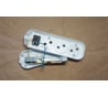 На 10A, без заземляющего контакта. Простая и удобная для сборки конструкция. Зажим проводов – винт и гайка. Покрытие металлических деталей прочное. Пластмассовые детали выполнены аккуратно, без заусенцев и облоя. Глянцевый белый пластик.