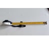 Изготовитель Ningbo Kayshin Tools, Китай. Корпус из двух пластиковых половин, скрепленной 4-мя саморезами. Без резины, аккуратный и компактный. Пластик на ощупь самый обычный, недорогой, глянцевый. На задней стороне стальная клипса черного цвета. Размеры корпуса (и по вертикали и по горизонтали) подписаны в виде рельефных цифр (52,5 мм в ширину и 51 мм в высоту). У рулетки есть кнопка тормоза снизу (удобно ложится под палец), и сдвижная кнопка фиксатора спереди. Снизу сзади вокруг колодца одного из саморезов сделана прорезь для ремешка и закреплен ремешок (вполне приличного качества) шириной 7 миллиметров по всей длине. Лента желтая, матовая с легкой сетчатой текстурой, еле заметной при взгляде сбоку. Покрыта нейлоном. Разметка черная (числа, кратные 10 написаны красным и крупнее), односторонняя, размеры метрические, числа указаны полностью. Читается отлично. Первые три сантиметра для читаемости указаны мелкими цифрами. Я так понимаю что римское II в овале означает класс точности 2. Зацеп стальной черного цвета, закреплен двумя клепками-грибочками, имеет выдавленный пупырышек, который ходит по прорези в ответной детали. Ответная деталь кроме двух клепок/грибочков дополнительно закреплена обычной клепкой. Магниты в зацепе закреплены с помощью пластиковой обоймы красного цвета (выглядит заметно надежнее, чем просто запресованные в сталь магниты). Зацеп односторонний, без выреза для шурупов, шире ленты на 2 миллиметра с каждой стороны, по углам сделаны небольшие выборки, также полукруглая выборка сделана в нижней грани зацепа посередине грани. Лента разматывается полностью, до отметки в 3,8 метра, но дальше запаса ленты нет совсем. Сматывается хорошо, тормоз работает мягко. Фиксация происходит с небольшим щелчком, удобно тактильно понимать что лента зафиксировалась. Выдвигается без излома на 140 см. На 150 уже излом, на 130 излома не происходит даже если её трясти.