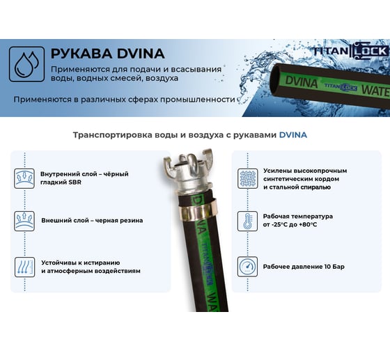 Рукав для воды напорно-всасывающий DVINA-PREM 76 мм, 30 м TITAN LOCK TL076DV-PR_30