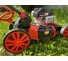 Косит хорошо и легко, неровность рельефа это не проблема газонокосилки, колёса большие, экономная бака на 12 соток хватает. Регулируются обороты ручкой скорости хода, от дрых тых до дрых дрых тых, когда наедается травы то старается сама поднять обороты чтоб не заглохнуть. А вообще не нужно на пузо опускать газонокосилку и лезть в высокую траву, не мешайте технике работать. По сравнению с более именитыми движками от кавасаки, хуской и передними поворотными колёсами выигрывает данная по цене минимум в 2-3 раза. Травосборником ни разу в ней не пользовался, он лежит с сарае компактно и мало места занимает опять же в отличии от жесткой конструкции от бош. Ну там совсем другая история. Собственно данная самоходка и была приобретена на смену электрического боша.