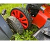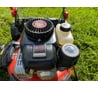 Колея колес шире ширины скашивания, неудобно. Травосборник стоит под приличным углом вверх относительно горизонта, при снятии - трава высыпается.Установка травосборника затруднена, неудобно. Масло залить не пролив без воронки - не получится. Масляный щуп- не информативен. Крышка бензобака без поводка