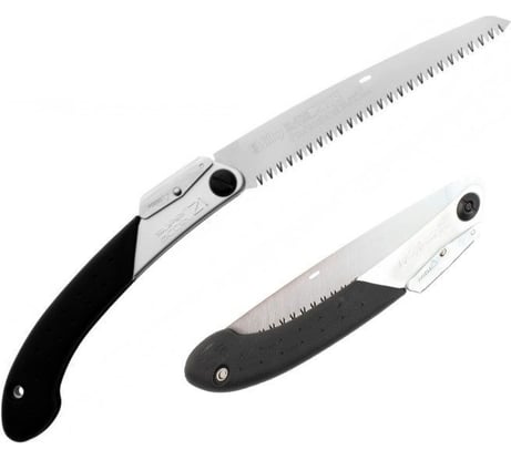 Ножовка шустрая, как и все из модельных рядов Gomboy, Bigboy и т.д. Высокое качество материалов. Рукоять стальная обрезиненная. Позволяет работать в две руки. Узел крепления, ключевое, чем отличаются японские Silky от большинства подражателей. Ось из винта со шлицом для закручивания, «гайки» (на оси которой в допуск посажено отверстие полотна), и плюс гроверная шайба для предотвращения раскручивания винта. Пружинный замок срабатывающий автоматически при приведении ножовки в боевое состояние. О полотне можно рассказывать очень много, но не здесь. Для незнающих только уточню - заточка с геометрией зуба «на себя». Будете пилить, толкать с усилием не надо. Протолкнули и с небольшим нажимом к себе. Теперь о минусе, что обнаружил в линейке с литерой Curve. Кривая линия описанная вдоль по кончикам зубьев имеет дугу R2000 (радиус два метра). Сделано это для увеличения времени контакта с древесиной. Понятно, что замысел хороший - скорость распиливания должна увеличиться. Но ножовки Silky ценны не скоростью, а удобством. Внимание: в линейках моделей с прямым полотном предусмотрено второе положение полотна для работы с низкорасположенными стволами. Здесь его нет! Одно положение и выгибайся как хочешь, если ствол ниже коленей. Из-за этого вероятность утыкания кончиком полотна в землю, грунт, камни и прочее, очень велика. В связи с выше сказанным, вердикт - Silky Gomboy 270 хороша, но больше подходит для труда на уровне высоты примерно от метра до вашего роста. Ниже можно, но очень внимательно и осторожно. В целом пила на твёрдые пять баллов. Или на десятку. Кому как нравится.