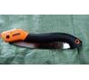 Удобная система открывания - закрывания лезвия. Прекрасно справляется со спилом веток в саду, можно так же попилить и небольшие брёвна. Хорошо заточенные широкие зубья. Эргономичный захват ручки, сама ручка прорезинена. На ручке есть отверстие для подвеса на хранение.