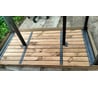 Хороший стол, надежный. Поставили на улице около дома на даче. Очень удобный, широкий. Снизу скреплено на планку. Со временем (очень не скоро) надо будет заменить только дерево. Стол вечный.