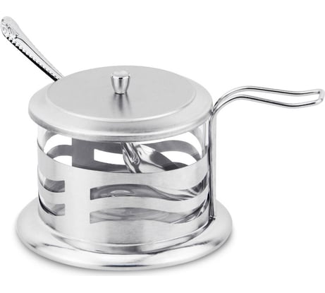 Отзыв Сахарница Mallony DOLCE с крышкой и ложечкой объем 250 мл стекло в корпусе из нержавеющей стали волна 005489