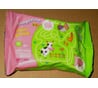 Детские влажные салфетки, длина в сложенном вдвое состоянии около 15 см. Содержится 20 штук в пачке, увлажнены хорошо, запах отдушки нечто среднее между шампунем и хорошим стиральным порошком. Эффективные в использовании как для ребёнка, так и для взрослого. Для ребёнка эти салфетки можно использовать в различных ситуациях. У взрослого человека годятся для обтирания лежачих больных, вытереть грязные руки на улице, оттереть мазут с рук в гараже.