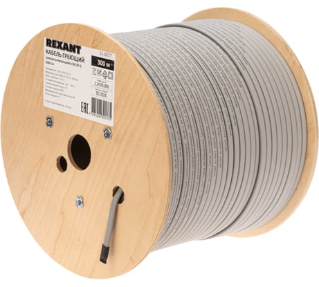 Отзыв Кабель греющий (нагревательный) саморегулирующийся REXANT SRL30-2, неэкранированный, 30 Вт/м, 0.9 мм2/55 м, 300 м 51-0277