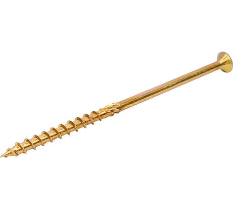 Отличный шуруп, нужны были две штуки для кровати из сосны. Правда 250 не нашел, пришлось использовать этот. Но отлично подошел, шуруп ровный, потайной. Вкручивается, если не рассверлить под всю его длину, под конец по плотному дереву с хорошим усилием, но при этом шлиц не рвет и шуруп целый. Использовал шестигранниники-звездочку купленые прям в пункте выдачи.
