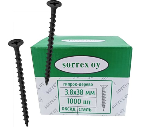 Отзыв Саморез для крепления гипсокартона к дереву, гипрок-дерево) SORREX с крупной резьбой, 3,8x38, 1000 шт. SGW-5-038-038 1000