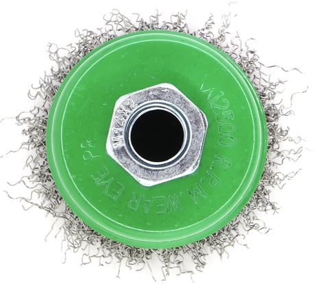 Вполне рабочая щетка. Зачищал кирпич - справляется хорошо. Биение минимальное, что не длинном ворсе, что на стёсанном. Проволока почти не вылетает (может парочка за все время.)