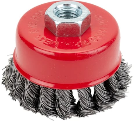 Использовал для зачистки перед покраской металлического гаража. Проволоку держит, метал чистит. Биения нет. На 125 болгарку подходит хорошо. Обязательно нужны очки - куски ржавчины очень больно прилетают в лицо.