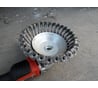 Оптимальная жесткость крученой проволоки. Аккумуляторная УШМ 150 мм (Einhell) выдерживает работу с ней даже при некотором дисбалансе и приличной весе насадки.