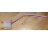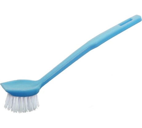 Пробовал оттирать замоченную чугунную сковородку, которую нельзя металлической губкой тереть, а то будет пища пригорать. Щётка работает. Потом ошпарил кипятком чтобы помягче стала, согнул чуть ручку над пламенем зажигалки, чтобы примотать к палке 30см и намыливать спину. Щетинки чтобы перпендикулярно спине были. На фото ручка после сгибания.