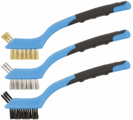 Жёсткая,для древней ржавчины и грязи в самый раз.не лохматится при интенсивном использовании,очень удобная,при чистке кистью руки не чертишь по поверхности как у многих щеток,особенно в трудно доступных местах.