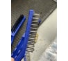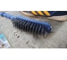 Щётка как щётка, не лучше, не хуже таких же. Я такие щётки перед началом использования укрепляю - ручку и зев со щетиной. Дело в том, что щетина нанизана на пруток, который заложен в зев щётки, и при интенсивной чистке нередко вылетает, вместе со щетиной. А закрепляю ручку обычной пресс-шайбой, - слетающая ручка - классика жанра этих щёток, а зев укрепляю заклепками или той же прессшайбой, без сверла. При сверлении несколько щетинок будут перебиты сверлом, зато щётка не развалится. Если бы производитель зачеканивал зев контактной сваркой... 🙄 СВЕРЛИТЬ ТОЛЬКО В ЗАЩИТНЫХ ОЧКАХ!!! Могут отлетать волоски! После клёпальника выбить кулачок заклепки и доклепать молотком с круглым бойком, чтобы не торчал рукав вытяжной заклепки.