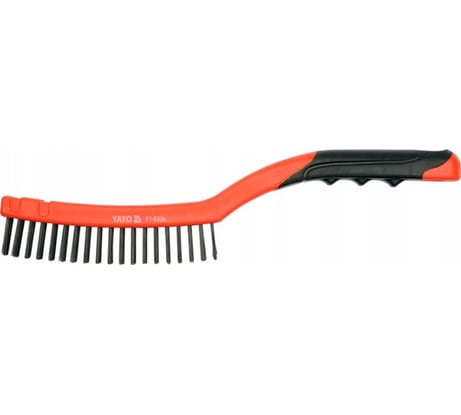 Щетка, которая удобно лежит в ладони в которой нет острых углов. Щетина как указано на сайте yato.com состоит из HCS (high carbon steel) — высокоуглеродистая сталь. Щетинки довольно прочные с толщиной 0,4 мм. Если нужна щетка аналогичной формы, но с щетиной из нержавеющей стали берите YT-6338