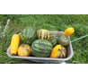Описание на пакете: Среднеспелый (от всходов до созревания 110-120 дней) гибрид с порционными плодами. Плоды плоскоокруглые, слегка ребристые, массой 2,5-3,5 кг, серо-зеленого цвета, с яркой желто-оранжевой, плотной, ароматной мякотью, по вкусу напоминающей морковь, с повышенным содержанием бета-каротина. Средняя урожайность с одного растения 18-20 кг. Ценность гибрида: высокие потребительские и вкусовые качества. Рекомендуется для употребления в свежем виде, домашней кулинарии, переработки на соки, для диетического и лечебного питания.