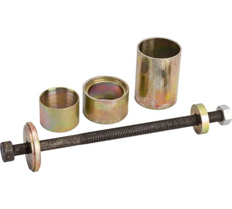 Покупал для своей машины. Перед началом смазал резьбу, при осмотре доверие не внушала, но решил рискнуть, потому что такие как я не останавливаются перед большими трудностями. На первом сайленблоке сломался. Выдавливает хорошо, время потратил меньше двух минут. На запрессовке все закончилось, дошел до середины болт встал мертво, ни вперед, ни назад. Решил выкрутить и понял, что резьба сорвана. Дальше в ход пошла не заменимая болгарка, срезал голову, посмотрел - сайленблок вошел до середины. Выбил, плюнул и поехал в сервис. Видимо старый метод с хомутом от выхлопной трубы 54 диаметра остается самым лучшим.