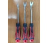 Удобный съёмник для двойных клипс с внутренним солдатиком-фиксатором.Сначала кончиком подцепляется и вытаскивается солдатик на нужную высоту, затем средней частью щипцов саму клипсу.Металл упругий,ручки не сползают и масла-бензина не боятся.Пружина поделу и не слетает.