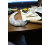 Серп имеет односторонний спуск и подводы (подточку) с двух сторон. При подточке образовался заусенец вдоль всей режущей кромки. Металлическая часть серпа крепится к ручке двумя на вид гвоздиками с полукруглой шляпкой, а посадочное кольцо - декоративное, похоже из ПВХ. Заусенец легко убрался надфилем.