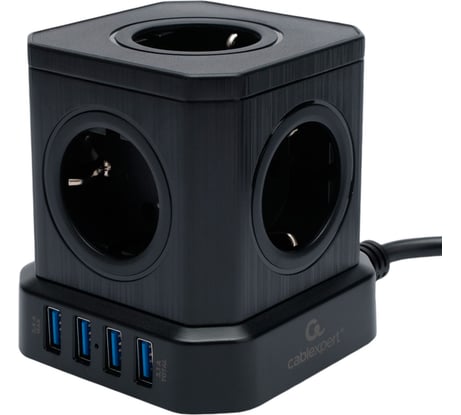 Сетевой фильтр Cablexpert сконструирован в виде башни, что и является его плюсом от других фильтров. При использовании всех четырех розеток вилки не мешают друг другу. Плюсом идет возможность быстрой зарядки гаджетов.