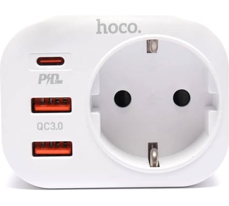 Отзыв о сетевом фильтре Hoco ns3, 2xusb-a; type-c, 3а, белый 6931474766175
