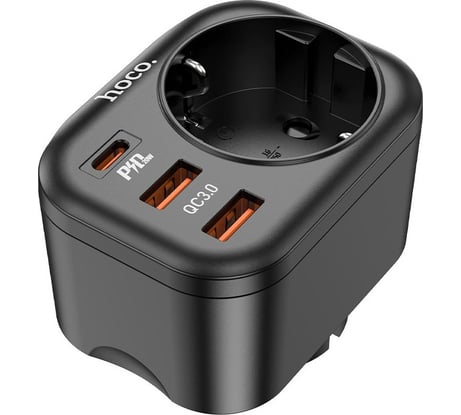 Отзыв Сетевой фильтр Hoco на 1 розетку ns3 multifunctional 2xusb qc3.0, 3a, 18w, 1xusb-c pd20w (черный) 0L-00056006