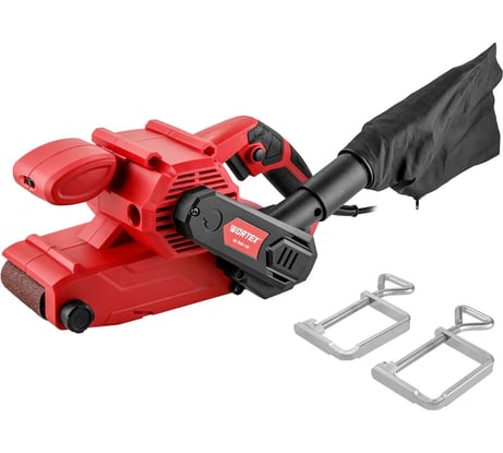 Качество пластика хорошее. Лента, после регулировки, бежит ровно. В комплекте: 2 струбцины, мешок для сбора пыли, переходник для пылесоса и щетки (на фото из не видно, они лежат в пакете с инструкцией).