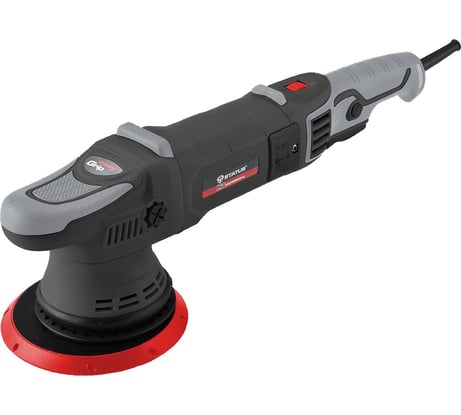 Очень хорошая «малая полировалка» орбитально-вращательного действия, которая подходит для финишной полировки после покраски кузовных деталей, для устранения царапин, рисок и голограмм на лакокрасочных поверхностях автомобилей. Корпус тонкий для хвата одной рукой. Имеется возможность использования трех дополнительных рукоятей: «грибок», который надевается на корпус редуктора, D-образная и «классическая» как у всех УШМ. В комплект поставки входят две подошвы и два поролоновых диска к ним. Поролоновые диски крепятся на «липучке». Подошвы имеют отверстия, которые предназначены для вентиляции и охлаждения полируемой поверхности. Скорость и частота колебаний регулируются с помощью специального колесика регулировки. Клавиша главного выключателя фиксируется для режима продолжительной работы, как у малых УШМ. Машина имеет плавный запуск и систему поддержания постоянной частоты оборотов и колебаний. Входные вентиляционные отверстия имеют дополнительную защиту от пыли – выполнены в виде сеточек, которые можно снять и промыть. В комплект поставки входят запасные щетки.