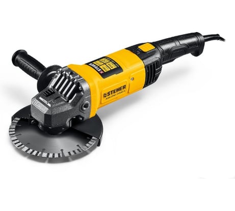 Мощность достаточная для заявленного диска 180 мм, с запасом на перегрузку, есть поворот редуктора (выкручиванием винтов крепления), поворот основной эргономичной ручки, плавный пуск, выключатель с пылезащитой IP5X и защитой от непреднамеренного включения и блокировкой во включенном состоянии (не нужно держать его пальцем, чего лишены многие современные УШМ), специальное лабиринтное уплотнение основного подшипника редуктора (защита от пыли и вытекания смазки), легкая замена щеток (крышка с одним винтом, щетки с цилиндрической пружиной), наличие суперфланца (защита от прикипания диска, легкая замена), три положения дополнительной рукоятки.