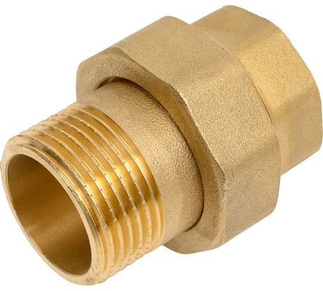 Массивная дюймовая американка с плоским уплотнением и насечками на резьбе.